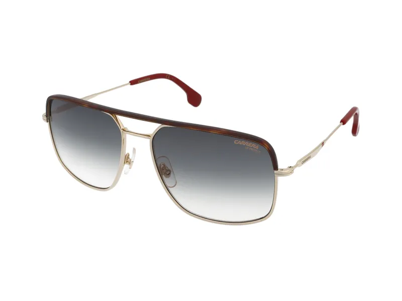 Gradient effect lenses gradually transition from a darker shade to a lighter shade at the bottom of the lens. The smooth transition of darkening intensity is optimal especially for the city. The spectacle lenses provide pleasant protection from the sun and at the same time allow better visibility when reading or working on the computer. The unique design is a practical and stylish solution. The double beam is a great example of a successful retro throwback. Often referred to as a "double bridge", it is guaranteed to attract attention as a distinctive feature that will make your glasses stylish and trendy. The predominant material of the frame is metal, which always looks elegant and minimalistic. Sunglasses have a UV filter of 400, and that means they block all UV radiation with a wavelength of up to 400 nanometers. This includes both UVA and UVB radiation. This UV filter is an essential part of a good pair of sunglasses. Its presence provides comprehensive eye protection from harmful UV rays and contributes to long-term eye health. The glasses transmit 18 - 43% of light rays and the lenses have a medium dark colour. The sunglasses are suitable for moderate sunlight. Thanks to the virtual mirror, you can try on these glasses straight away, right from the comfort of your home. The glasses will come in the original case or bag from the manufacturer. A microfibre cleaning cloth suitable for the care of the lenses is also a nice addition to the glasses.